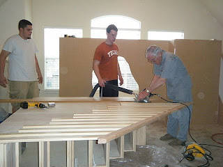 Paul, Alex and Mr. Hammack building the multi-purpose stairs. Each step is a drawer that may be used to store coloring book, crayons, art and crafts.