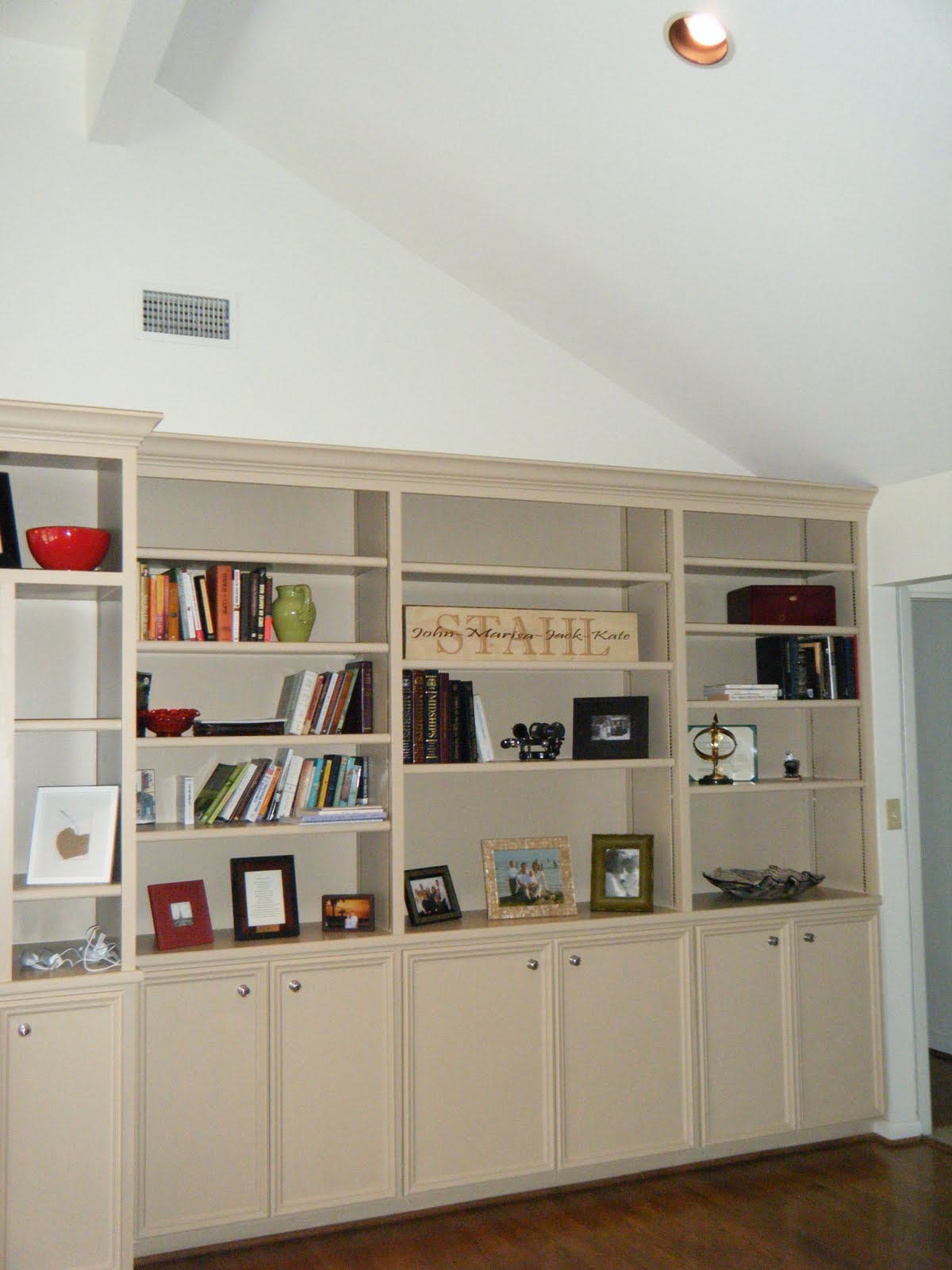 Center of entertainment center before, the TV space was not large enough to accommodate today’s TVs. Cabinets were just open spaces, not organized for DVDs or proper storage.