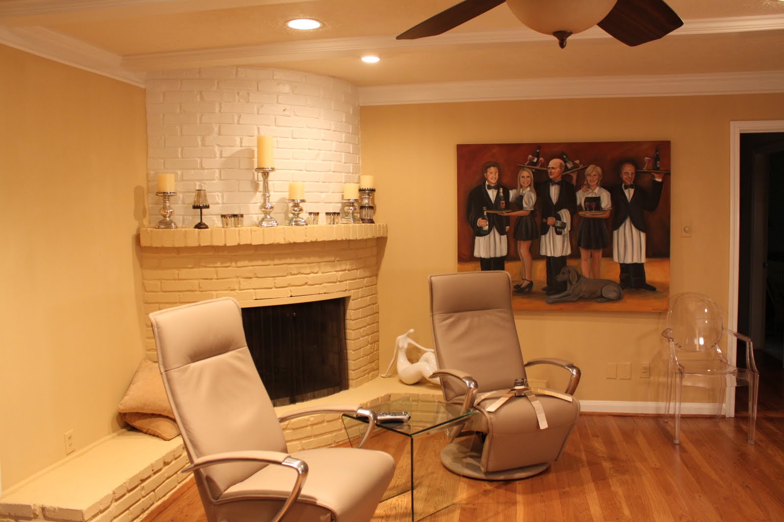 I was asked by a very wonderful client of ours to come help her do a quick update in her family room. The house was very traditional before, but she got a an idea to go alittle bit more contemporary but not over the top. When I came into the project she had purchased the two taupe recliners, ghost table and chair… but now what. The goal was to pull the room together and create a more modern space without lossing the traditional feel from the rest of the house.