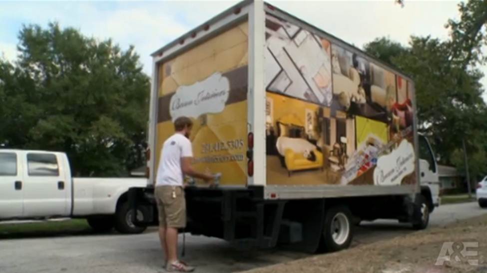 Our fabulous delivery truck pulling up to unload all the furniture we used to stage the home.