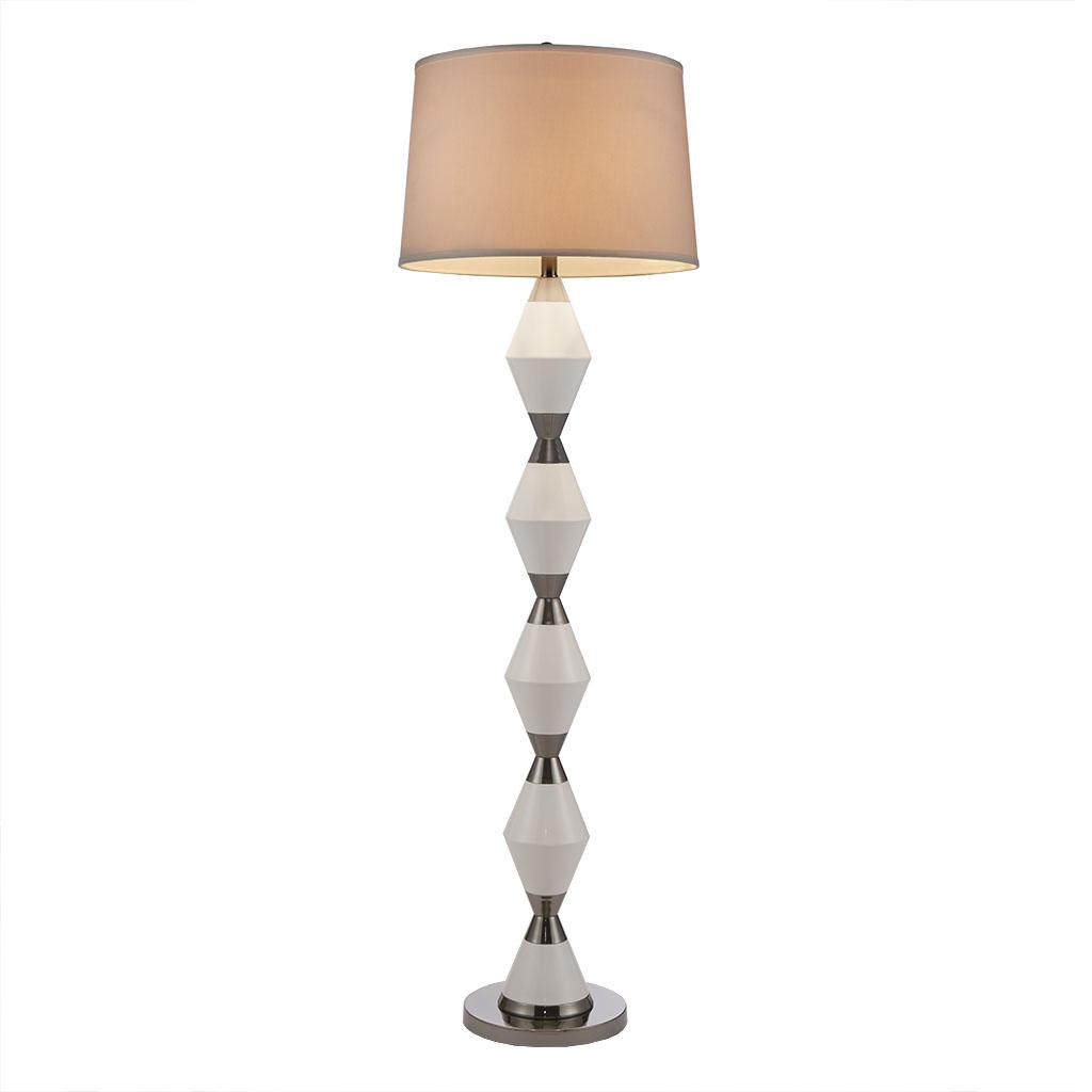 INK+IVY’s Abbot Floor Lamp beautifully accents your space with black nickel and white finishes that alternate along the geometrically shaped metal base, creating a striking contrast. The tapered white shade softly filters the light and features the ability to tilt so you can easily adjust the light. Plug in to light up your room using the 72-inch clear cord and on/off switch on the socket. Uniquely bold, this floor lamp brings an eye-catching style to your living room or bedroom. One spiral CFL light bulb is included. One 60-watt incandescent bulb or one spiral 23-watt CFL light bulb is needed. Comes with a 2-year warranty.