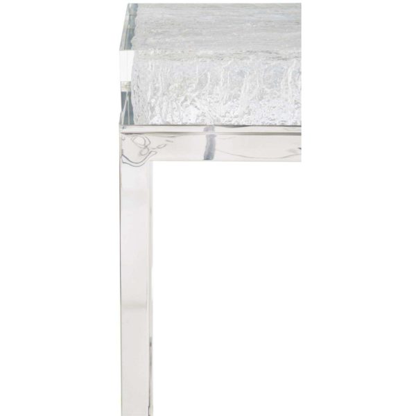 Solid acrylic top with cast wood grain pattern Polished stainless steel base with stretchers Adjustable glides Anti-tip kit Specifications subject to change without notice. Due to differences in screen resolutions, the fabrics and finishes displayed may vary from the actual fabric and finish colors.