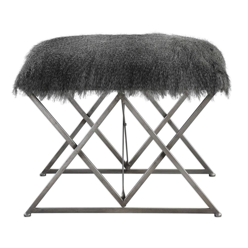 Plush animal inspired faux fur in multi-hued gray tones atop an argyle base in iron, hand finished in a warm silver tone with shimmer accents. Slight variations in fur color may occur.