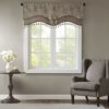 For a unique and luxuriously classic style, our Madison Park Aubrey Beaded Valance is the perfect extra touch to your decor. The alluring jacquard weave is inspired from an updated paisley motif and is woven in beautiful hues of black, gold, and a hint of platinum for a shimmering accent. The window valance features solid faux silk piecing and flat piping details, while delicately finished with a scalloped bottom design and intricate gold bead trim, creating an intriguing elegant look. Simply hang on rod pocket; fits up to a 1.25 diameter rod.
