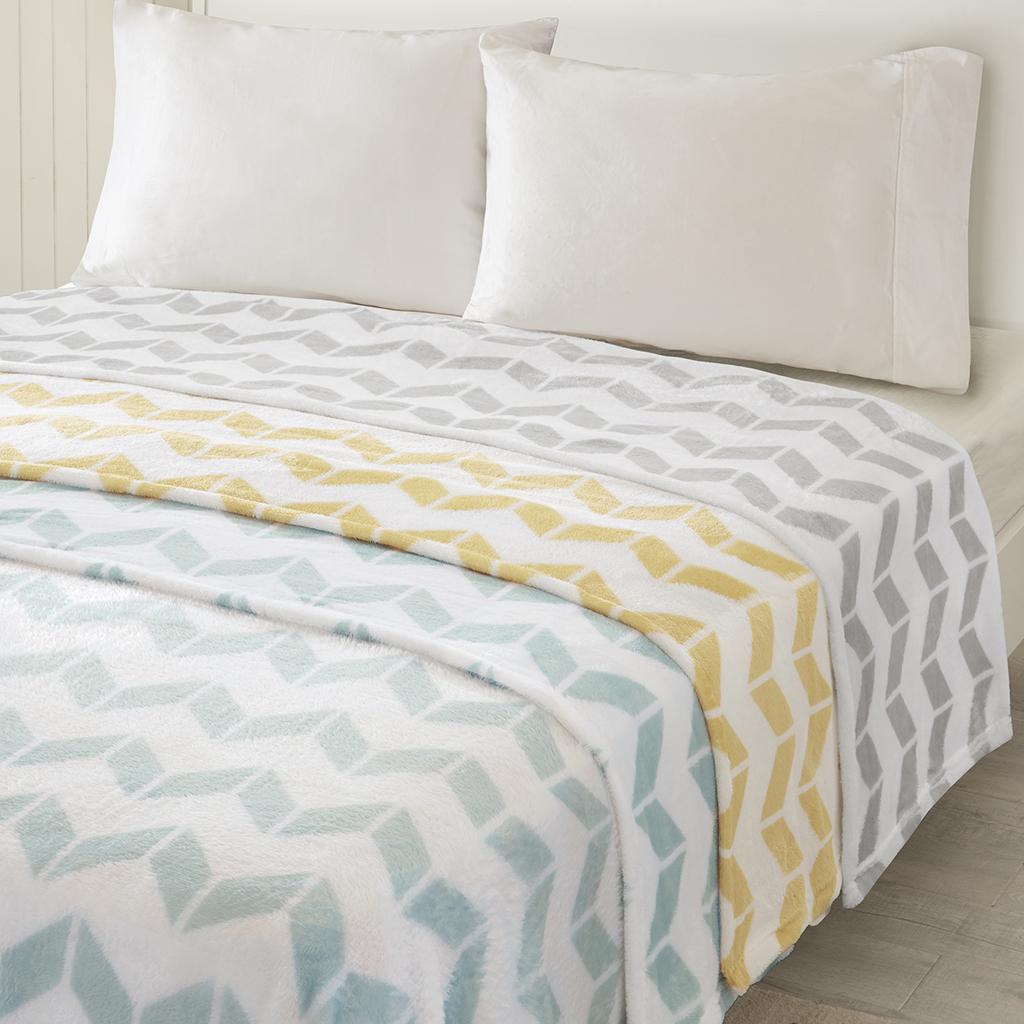 This super soft plush blanket features a modern chevron print that adds color and style to your room. This blanket is 2 inches longer than the standard blanket, providing you with added warmth and coverage.