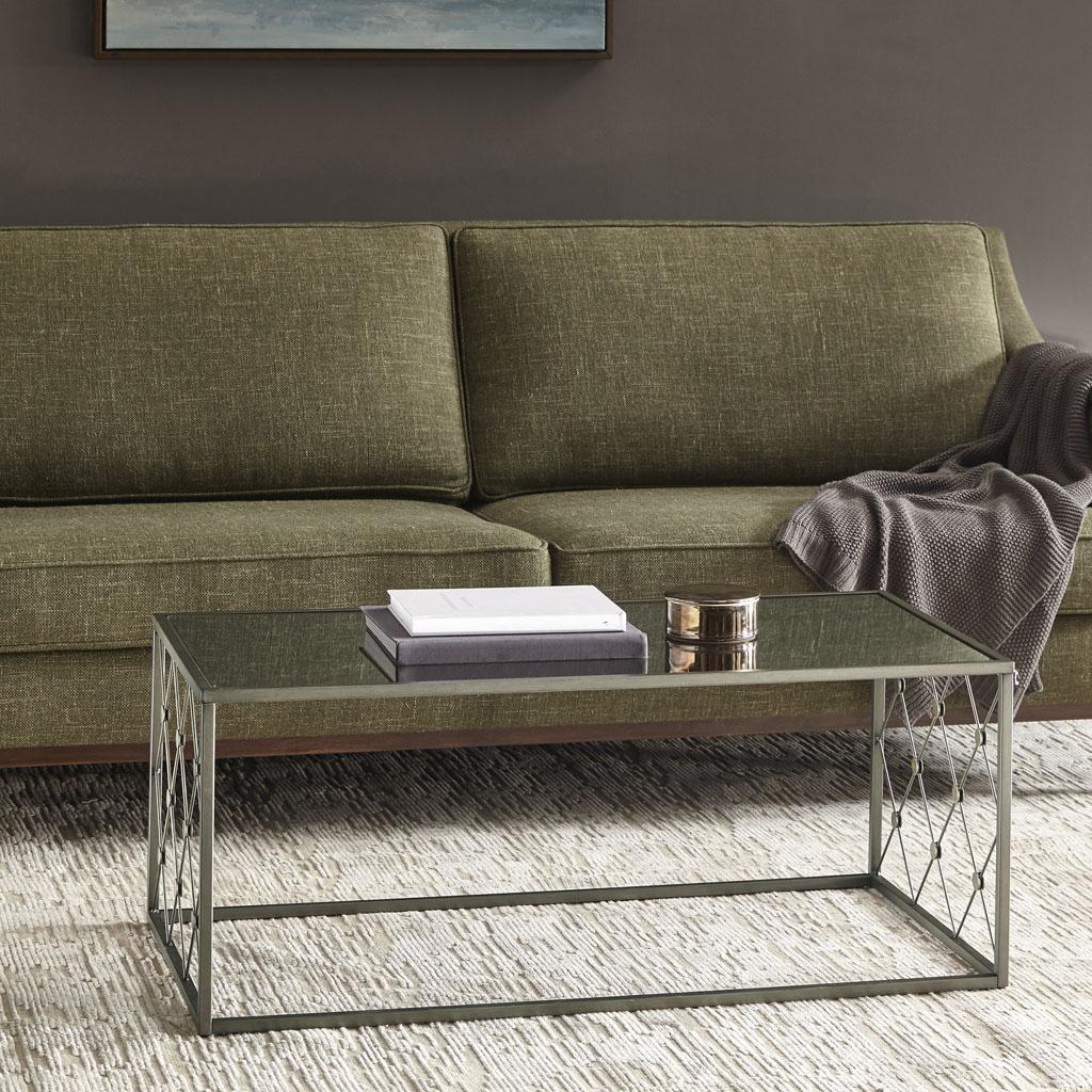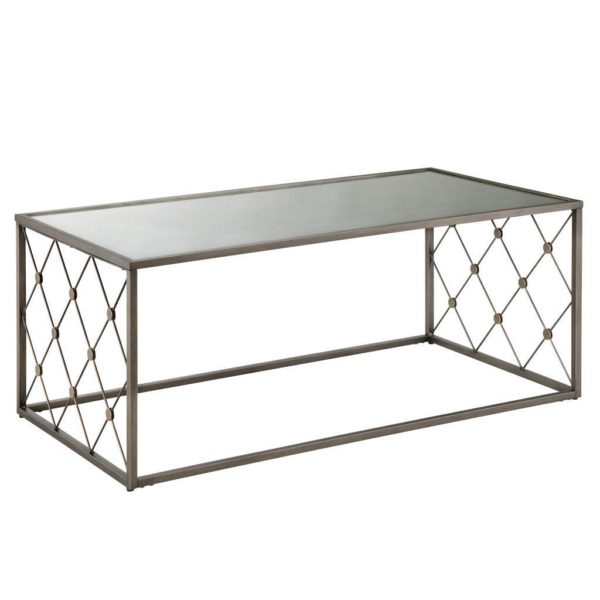 The Martha Stewart Coyne Coffee Table offers a unique modern update to your home décor. This rectangular coffee table features an antique mirror top with a dark coffee finish on the metal base, for a stunning contemporary look. Two of the sides flaunt a geometric diamond pattern that adds an elegant touch to the design. Perfect for your living room décor, this coffee table brings a gorgeous modern addition to your home. Assembly required and tools are included.