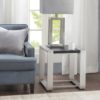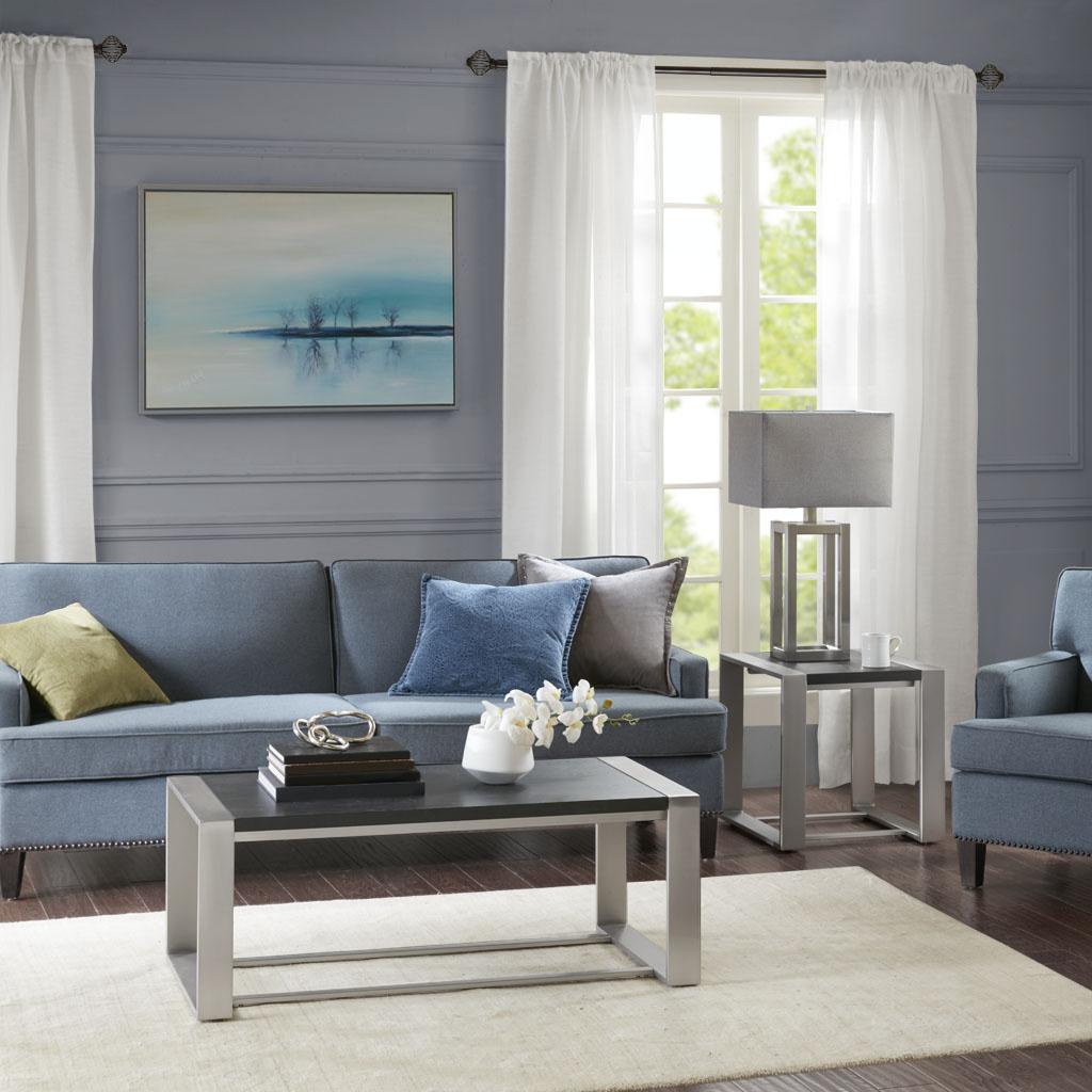 Madison Park’s Eastwood End Table updates your home with a strong, modern appeal. This wood end table features a distressed black finish that stylishly contrasts with brushed silver metal legs. With its sleek industrial design, this modern end table adds a fresh update to your living room. Assembly is required.