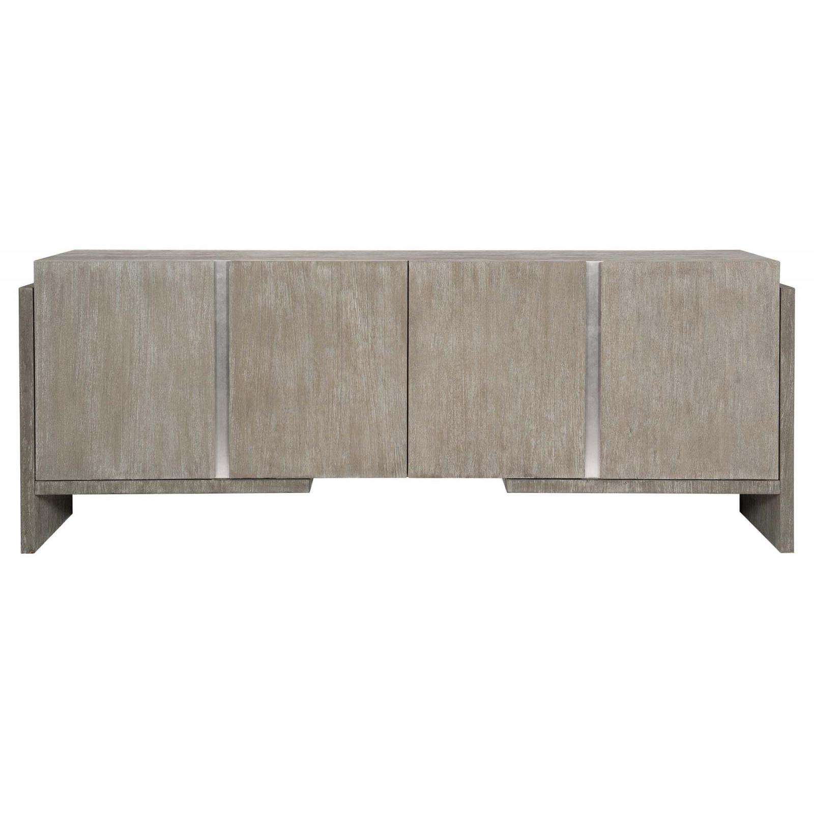 Two-tone finish – Case in Linen finish and end panels in Light Shale finish Inset brushed stainless steel panel below faux drawer fronts Two self-closing doors with top faux drawer fronts Behind paired doors is one drawer with felt liner, five compartments, ventilation holes and three grommet holes with cover in back panel Adjustable glides Anti-tip kit Note: Not designed to support TV &/or other media Specifications subject to change without notice. Due to differences in screen resolutions, the fabrics and finishes displayed may vary from the actual fabric and finish colors.