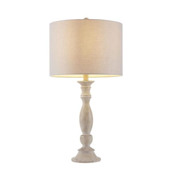 Accentuate your home décor with the chic transitional style of the Madison Park Grove Table Lamp. The slender base is made from a poly moterial and features elegant turned detailing with a natural wood finish. A drum-shaped base, in a grey hue, beautifully complements the design for a modern flair, while also softly filtering the light to give off a warm glow. Plug in to a power source using the 72-inch clear cord and illuminate your home décor by flipping the on-off switch located on the socket. Simple and elegant, this modern table lamp offers a chic update to your living room or bedroom. One 60-watt incandescent bulb is included. Comes with a 2-year warranty.
