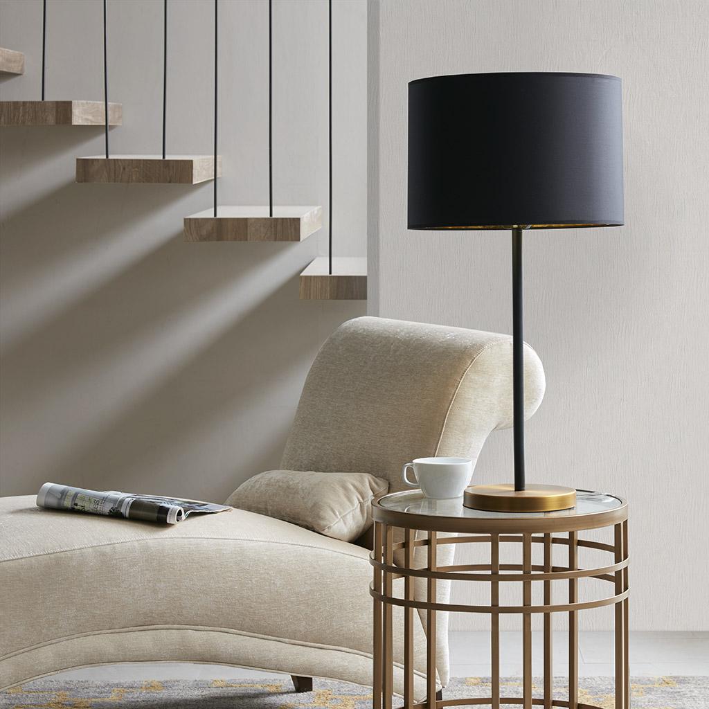 Elevate Your Home Decor With The Bold Look Of The Martha Stewart Hunts Table Lamp. This Table Lamp Features A Slender Metal Stem With A Black Finish And A Round, Gold Metal Base, Creating A Stunning Contrast. A Black Drum Shade With A Metallic Gold Interior Complements The Design; While An On/Off Pull Chain On The Socket Makes It Easy To Turn On The Lamp. With A 72-Inch Clear Cord, This Table Lamp Adds A Striking Touch To Your Home. 1 Type A Light Bulb Is Needed And Is Not Included. Spot Clean Only. Comes With A 2-Year Warranty.