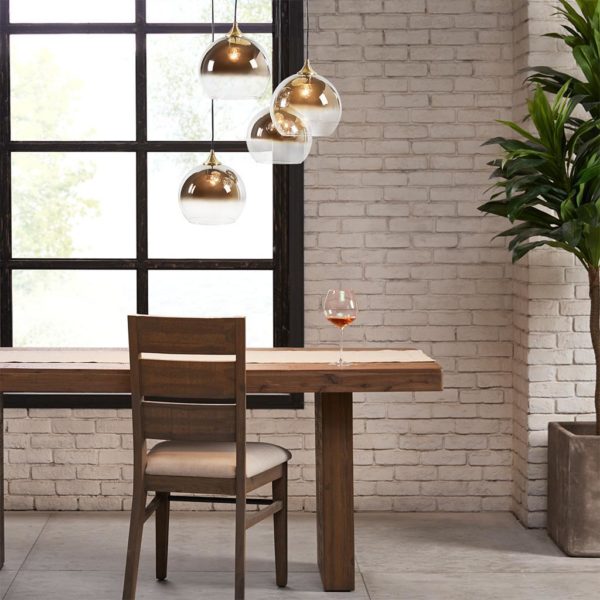 Simple and versatile, INK+IVY Mandal Pendants work well over an extra-long dining table, or hang in a small bistro setting to make a statement. The pendant cluster is made of 4 beautiful ombre glass globes; each globe measures 9Dx8H”. We suggest professional installation.