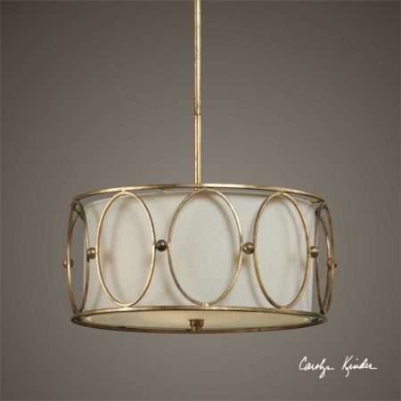 Add an artful finishing touch to your dining area with the Madison Park Signature Omni Pendant. A glass drum shape shade flaunts a beautiful blue hue that is accented by a brass finished metal base and ceiling cover. The lamp base is not adjustable. Hardwire this stunning pendant to the ceiling using the 120-inch grey cord, which has a 108-inch drop-down height from the ceiling. Hang in your living room or dining room to brighten your décor and give it an eye-catching flair. One Type-A 60-watt incandescent bulb or 13-watt CFL light bulb is needed. Mounting hardware and professional installation is required. Comes with a 2-year warranty.