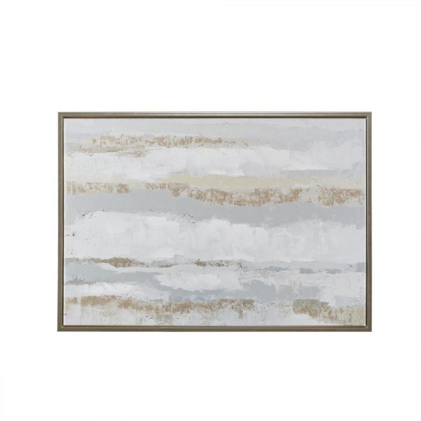 The Madison Park Strato Hand Embellishment Framed Canvas offers a charming modern update to your decor. Soft and subtle natural hues blend together to create a soothing abstract design, while gold foil accents add an eye-catching lustrous touch to the canvas wall art. The hand-painted embellishments add texture and dimension to the artwork and the gold frame provides a clean and elegant finish. Hang this oversized canvas wall art in your living room or bedroom to give your home a refreshingly contemporary look.