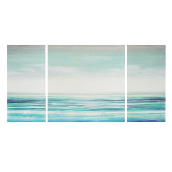 Hang the Madison Park Teal Tides Canvas 3 Piece Set in your home to set a peaceful and relaxing mood. Beautiful blues sweep across each piece to create a gorgeous ocean horizon, combined with a gel coating for a smooth finish. Available in a set of three, these wall art pieces make a great addition to any coastal decor.