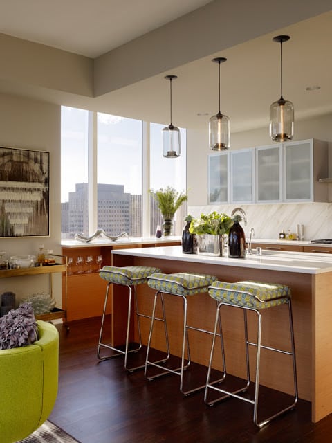 Both basics work to soften the kitchen and are a reflection of your personal design style, be it casual or formal, classic or modern interior design. Although recessed and under cabinet lights leave the smallest footprint in a small kitchen, a pair of pendant lamps above the center island or a trendy drum shade above the built-in breakfast nook will give the kitchen a finished look.